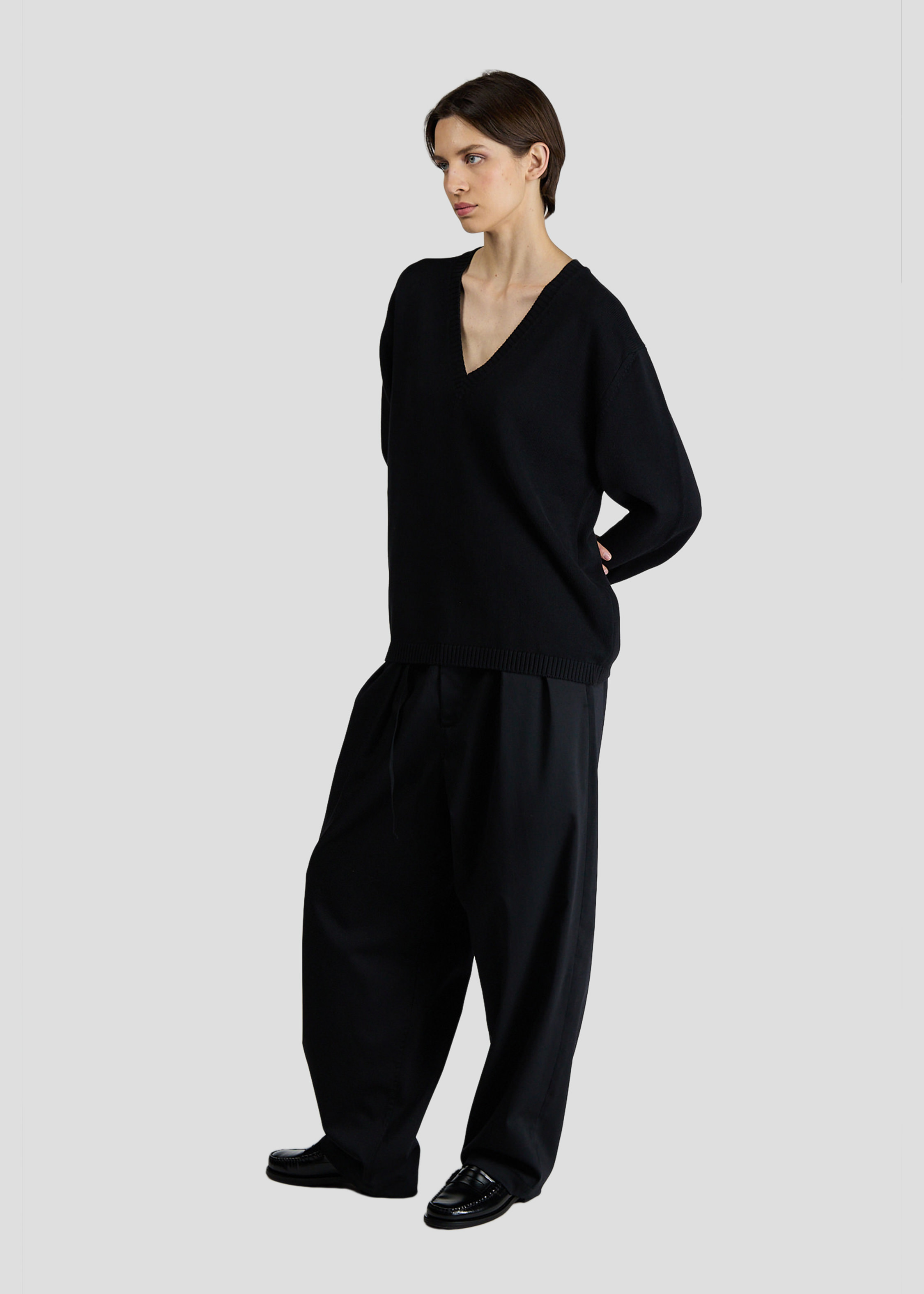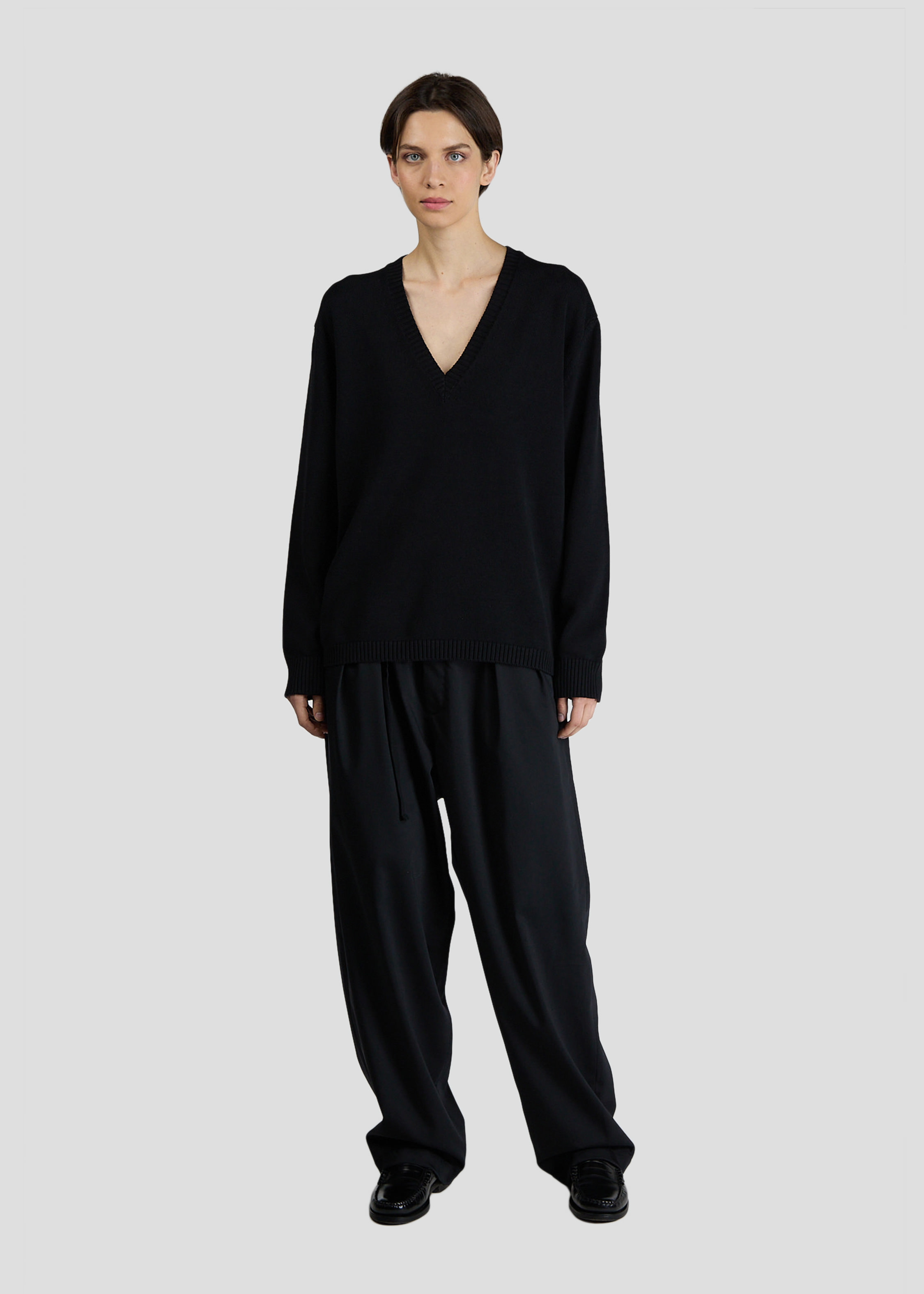 The v-neck cotton sweater is made of 100% organic cotton 7 gauge-three threads are pre-knitting twisted for a better fitting and to avoid pilling. Regular fit, bright colour palette.