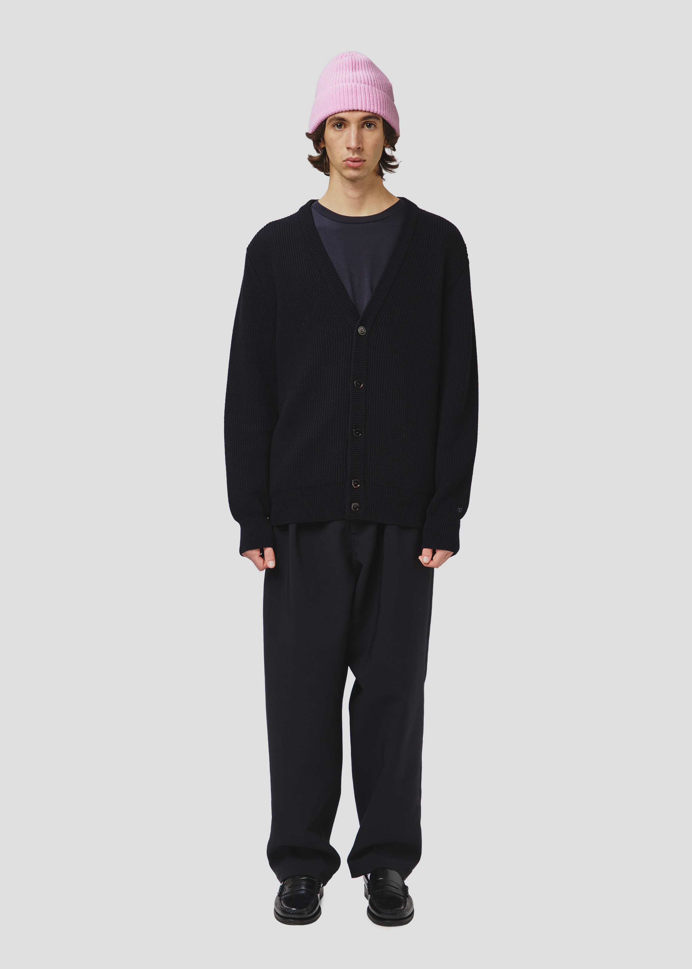A classic staple, the english rib cardigan with a contemporary clean relaxed fit. 7 gauge.