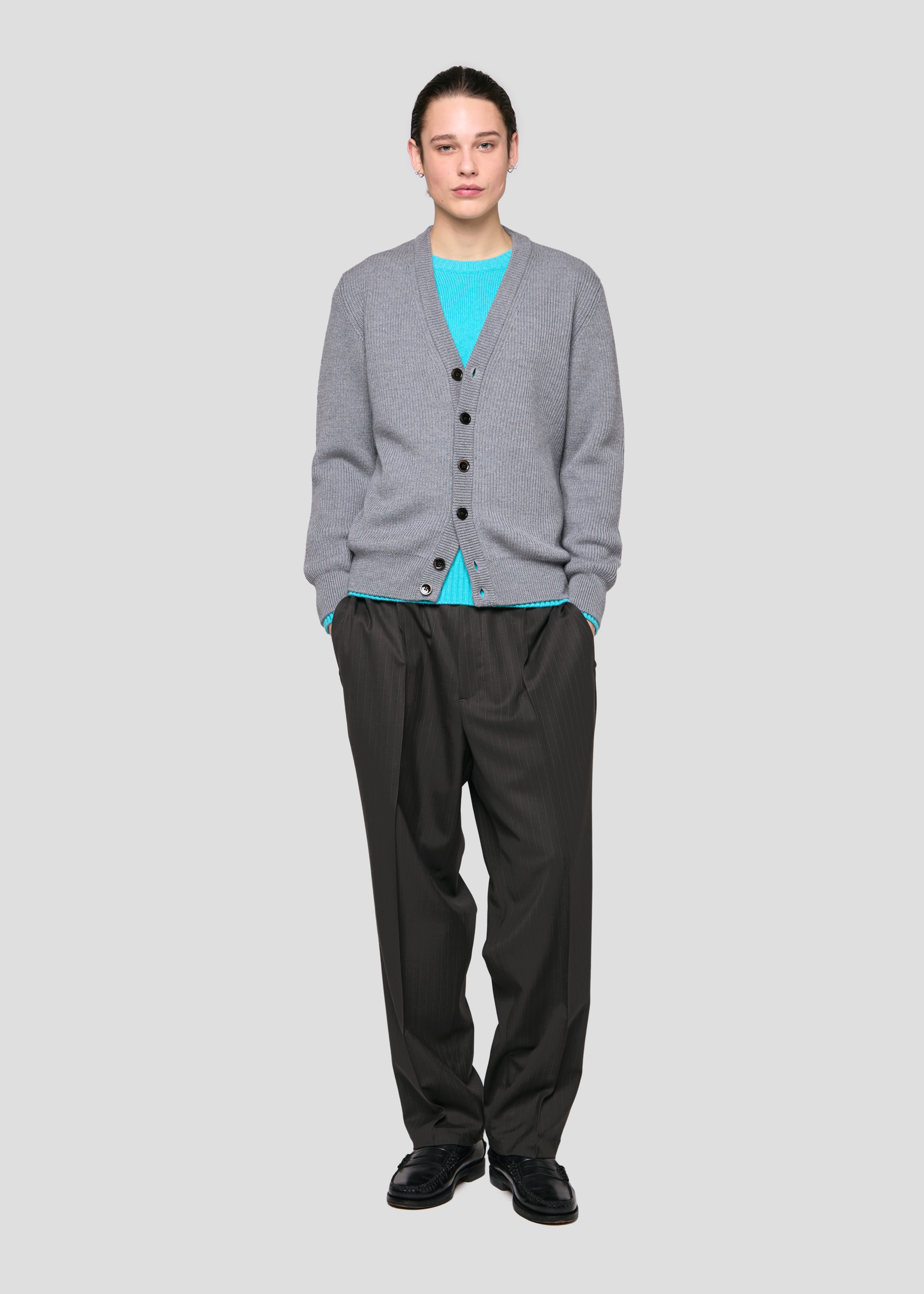 A classic staple, the english rib cardigan with a contemporary clean relaxed fit. 7 gauge.