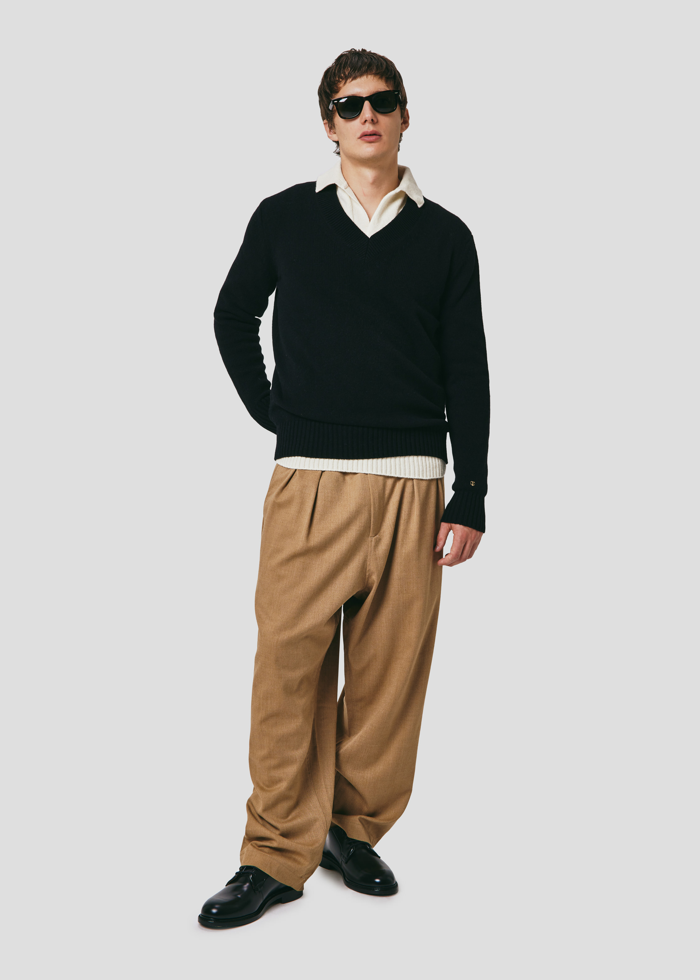 A contemporary V-neck in a soft lambswool and bright colours. 7 gauge.