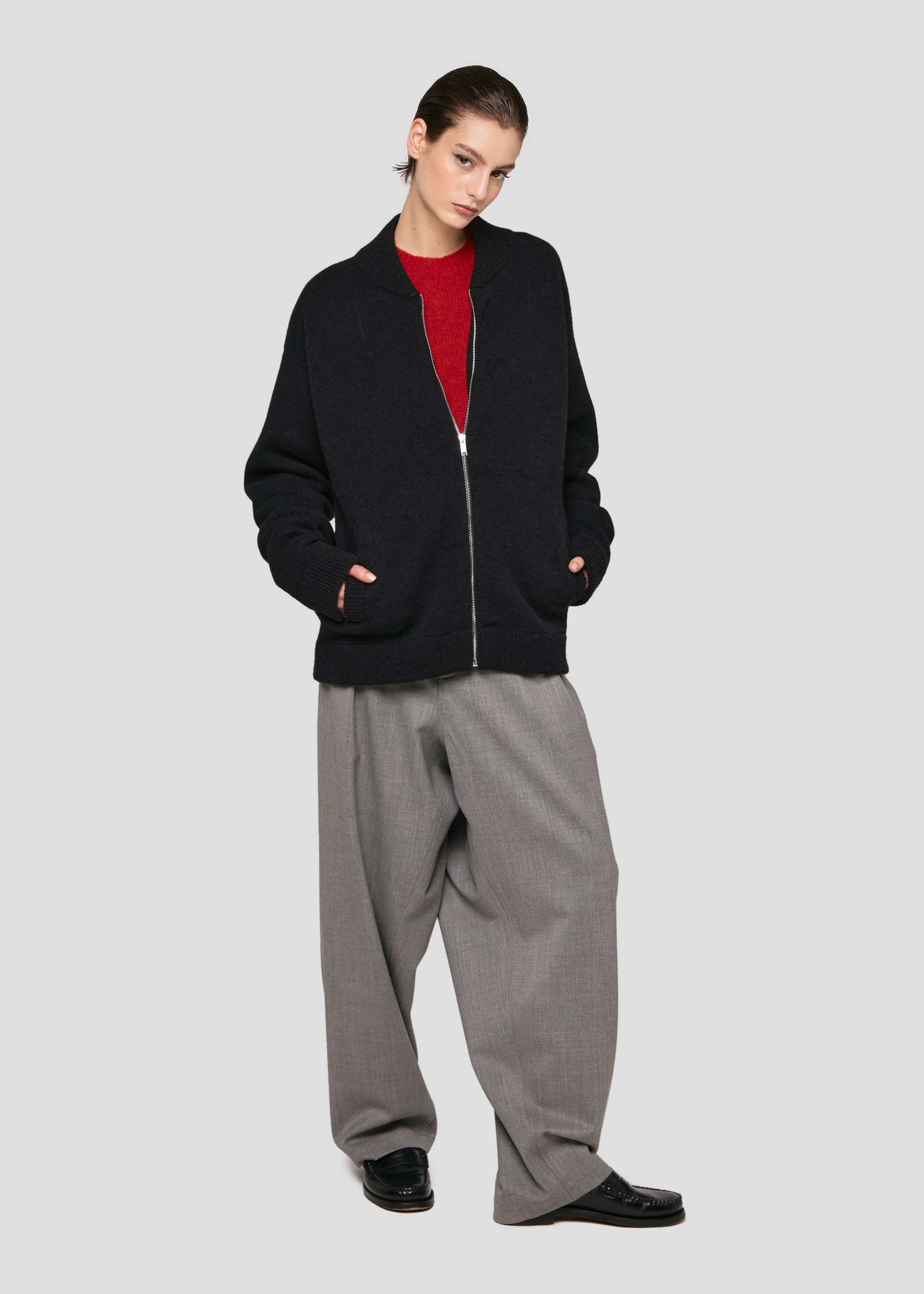 Un bomber in alpaca con cuciture a punto pieno e zip. Proposto in una palette di colori vivaci. Seven Gauge.