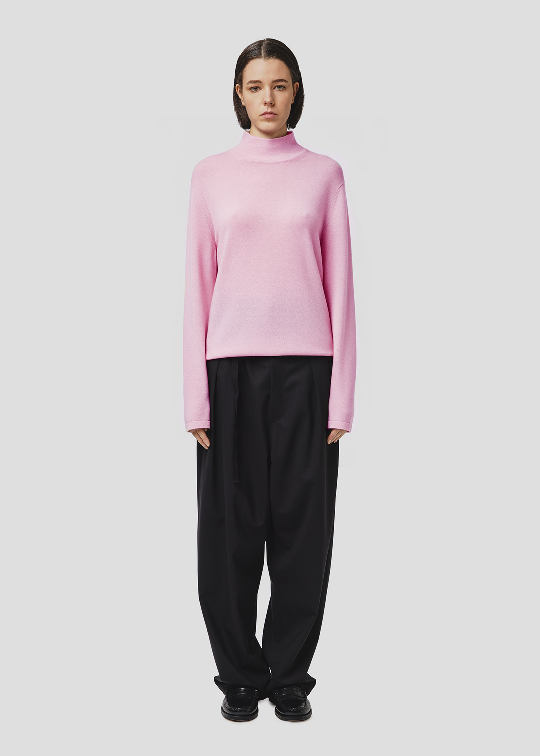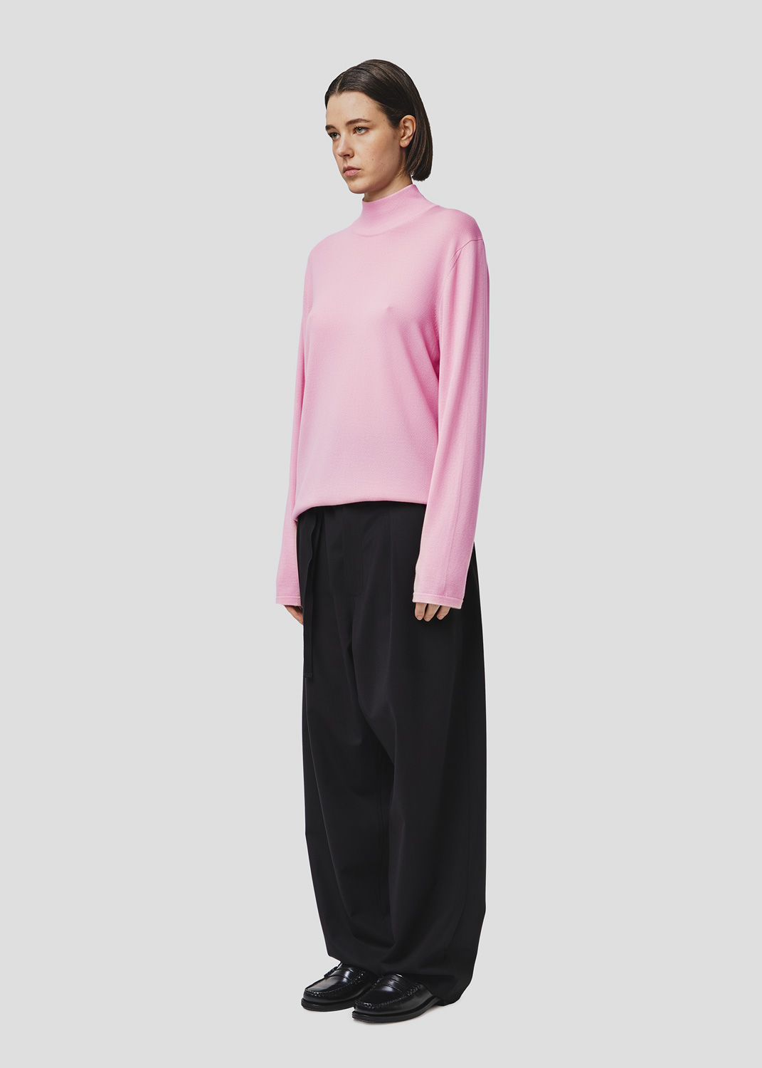 Una nuova serie in lana merinos e seta, in maglia leggerissima finezza 14, per capi da indossare come stratificazione su ensemble sartoriali o da soli per tutte le stagioni. Questa maglia girocollo è realizzata in 70% lana merinos e 30% seta e offre una mano e un tocco unici con una vestibilità regular. Disponibile in 11 colori, tra cui viola, rosa, acqua, verde scuro, cammello e bordeaux.