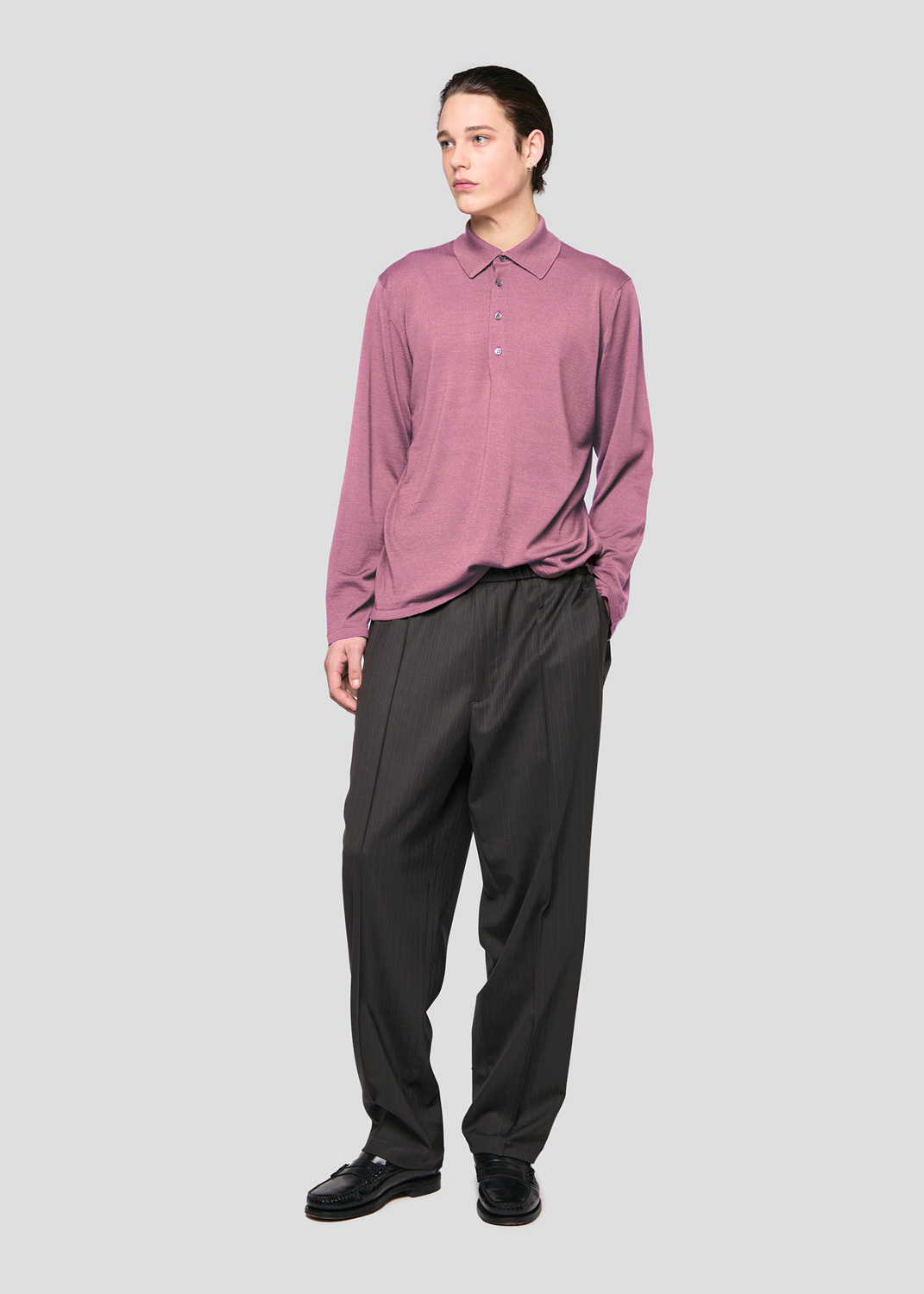 Una nuova serie in lana merinos e seta, in maglia leggerissima finezza 14, per capi da indossare come stratificazione su ensemble sartoriali o da soli per tutte le stagioni. Questa maglia girocollo è realizzata in 70% lana merinos e 30% seta e offre una mano e un tocco unici con una vestibilità regular. Disponibile in 11 colori, tra cui viola, rosa, acqua, verde scuro, cammello e bordeaux.
