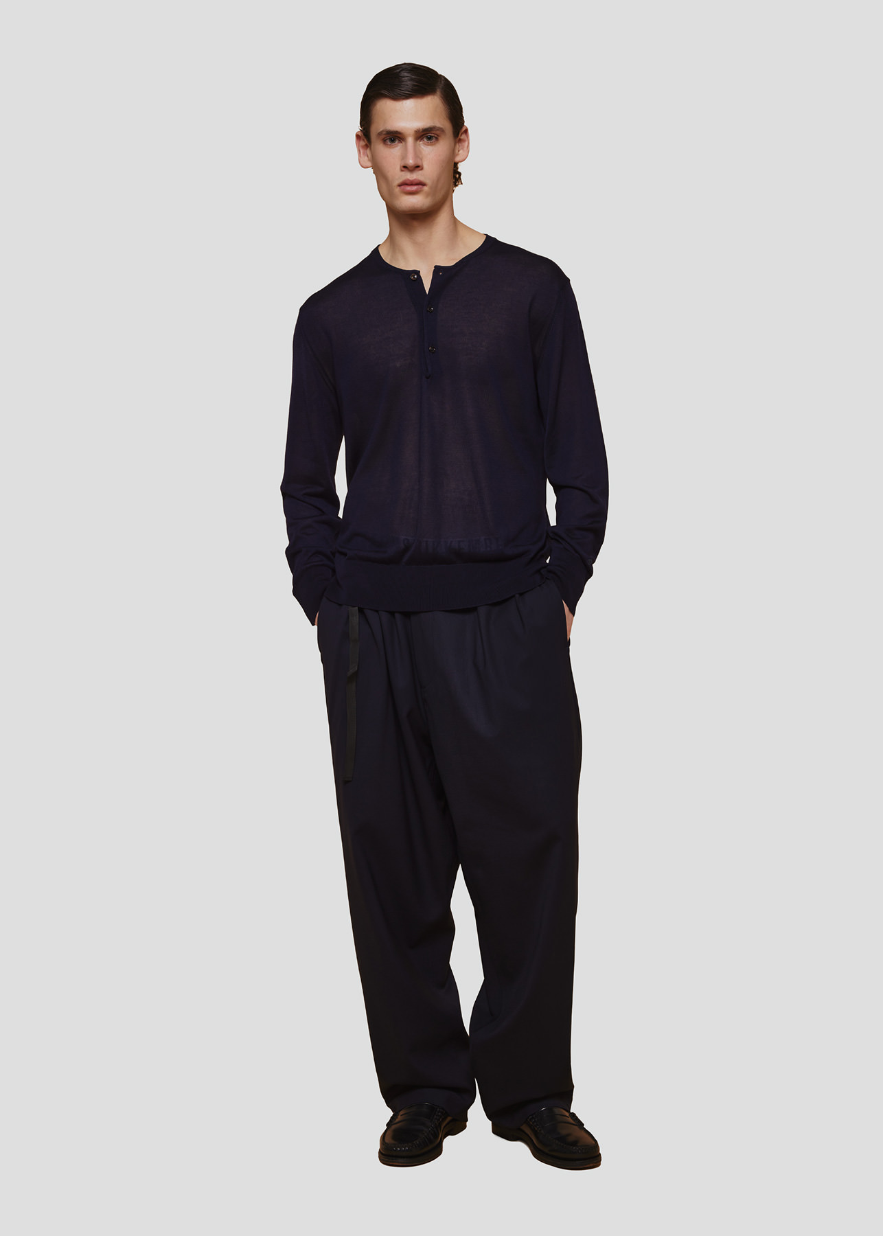 Realizzato in lyocell ultra leggero, presenta una struttura fine e ariosa che garantisce elevata traspirabilità e una sensazione fresca e setosa sulla pelle. La caduta fluida valorizza la silhouette con naturale naturalezza, rendendolo ideale per un layering leggero o per essere indossato da solo nelle mezze stagioni.